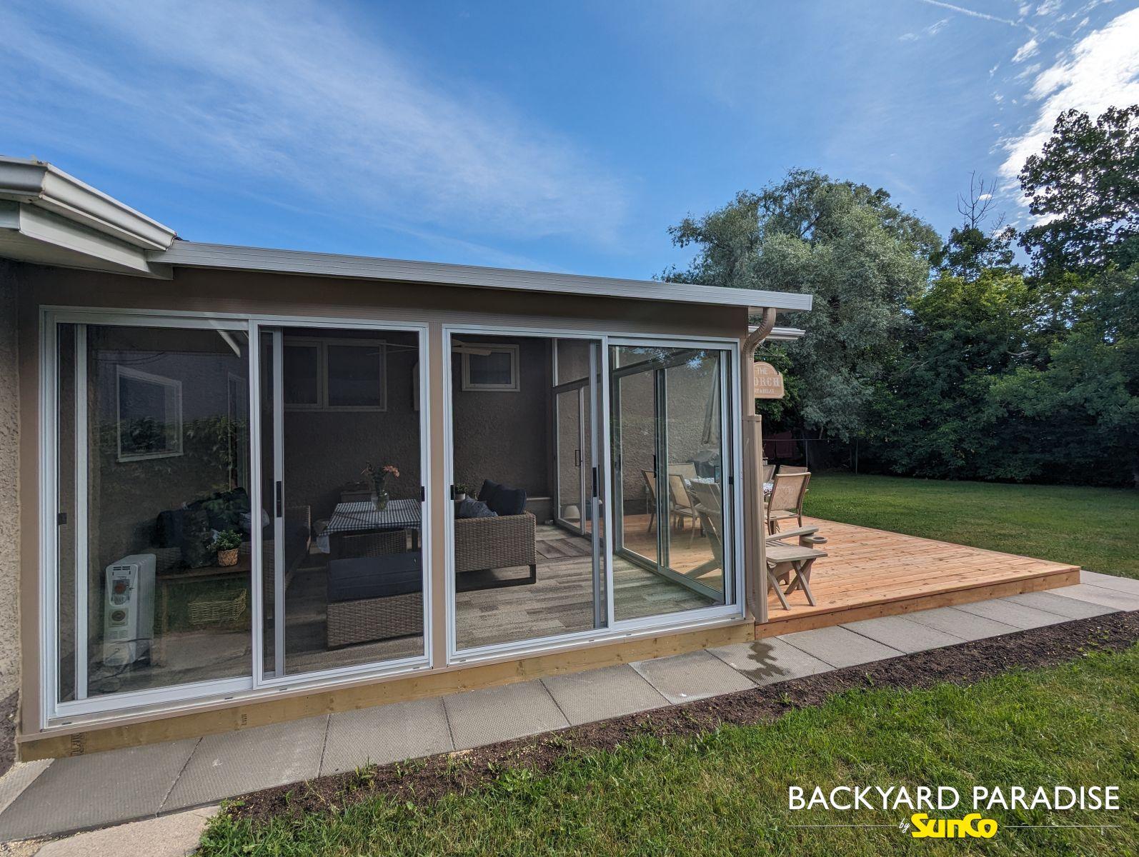 Sandalwood and white studio sunroom at grade with treated wood deck , Charleswood, Winnipeg , Manitoba 4By Chris Reimer / December 3, 2025