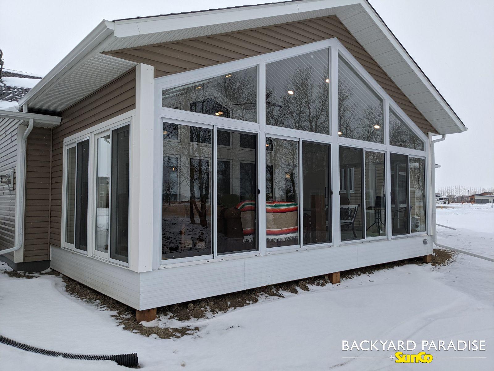 White curtain wall sunroom, Altona , Manitoba 2