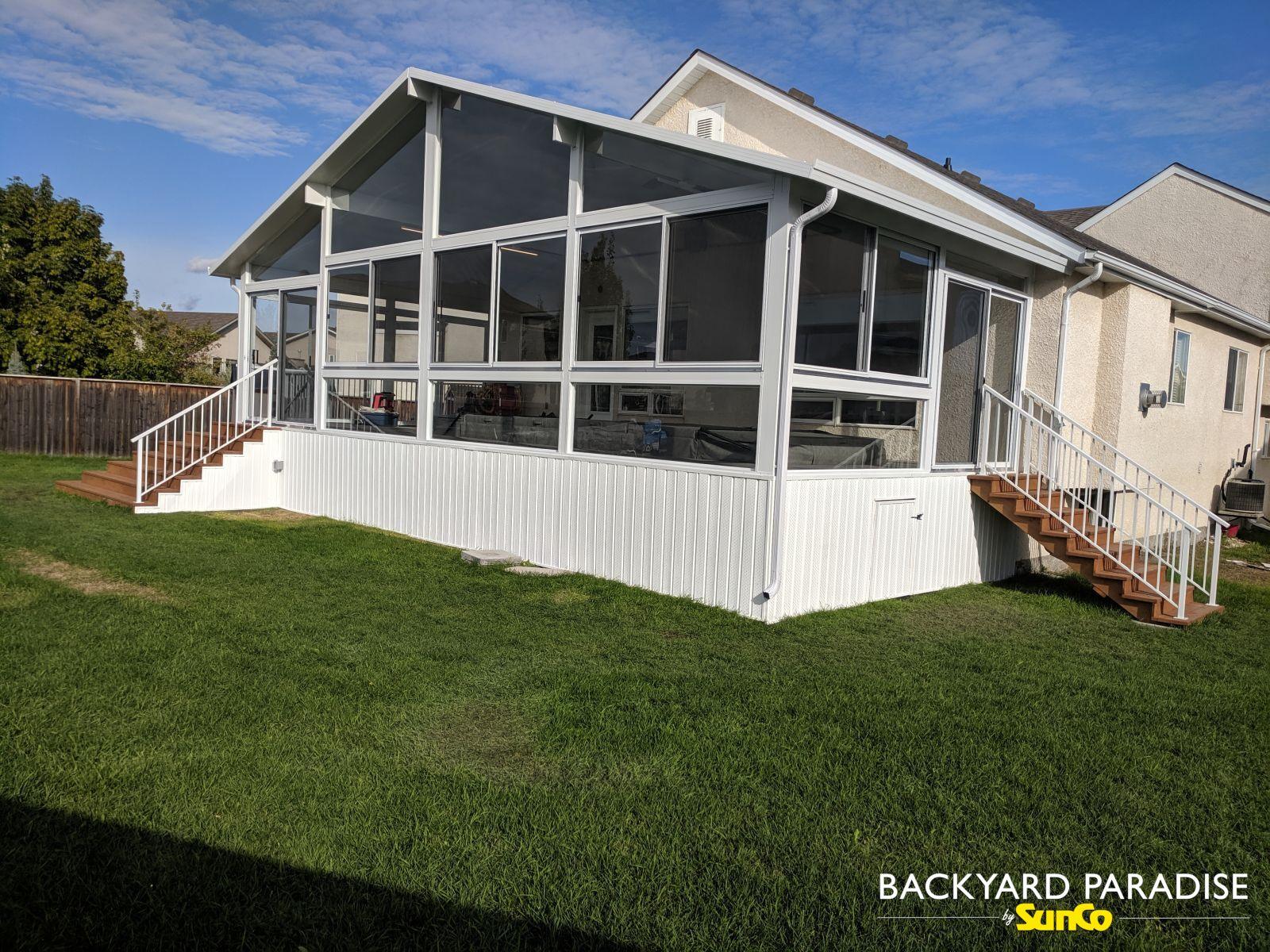White Gable swim spa sunroom with treated stadium staircase, Lindenwoods , Winnipeg , Manitoba 7By Chris Reimer / December 3, 2025
